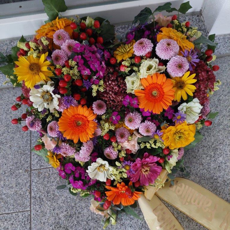 Liebevoll gestaltet und mit individuell bedruckter Trauerschleife, vermitteln Anteilnahme, spenden Trost und sind lange haltbar.